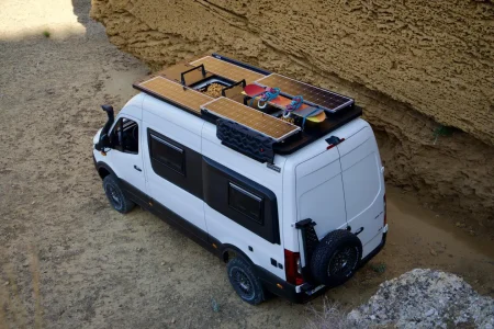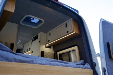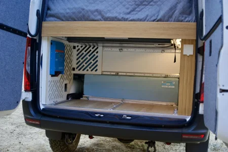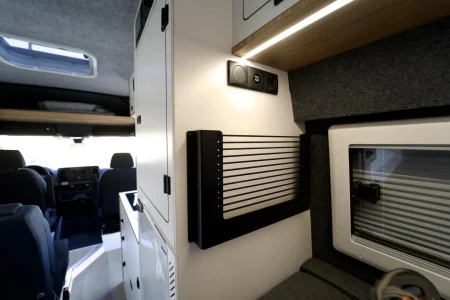 - 1 ud. Batería Victron LiFeP04 12,8V/200 Ah, Inversor Cargador Victron Phoenix MULTIPLUS-II 12/3000/120-32 230V con toma exterior y alargadera para enchufar en camping o garaje, booster Victron ORION XS 50A, panel de control de Batería Victron Cerbo Gx y Gx Touch 50, iluminación led interior, interruptores y tomas USB y 230 V, sensores de nivel en depósitos y alarma detector gases narcóticos, propano, butano y CO2.