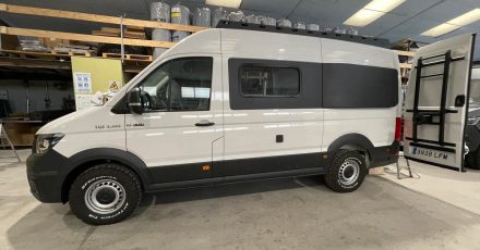 En esta Man TGE 4×4 hemos instalado ventanas de cristal y marcos interiores con oscurecedor y mosquitera. El perímetro de